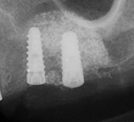 ラテラルスリット法にて上顎洞底部挙上術をさせていただき。骨造成をしました。