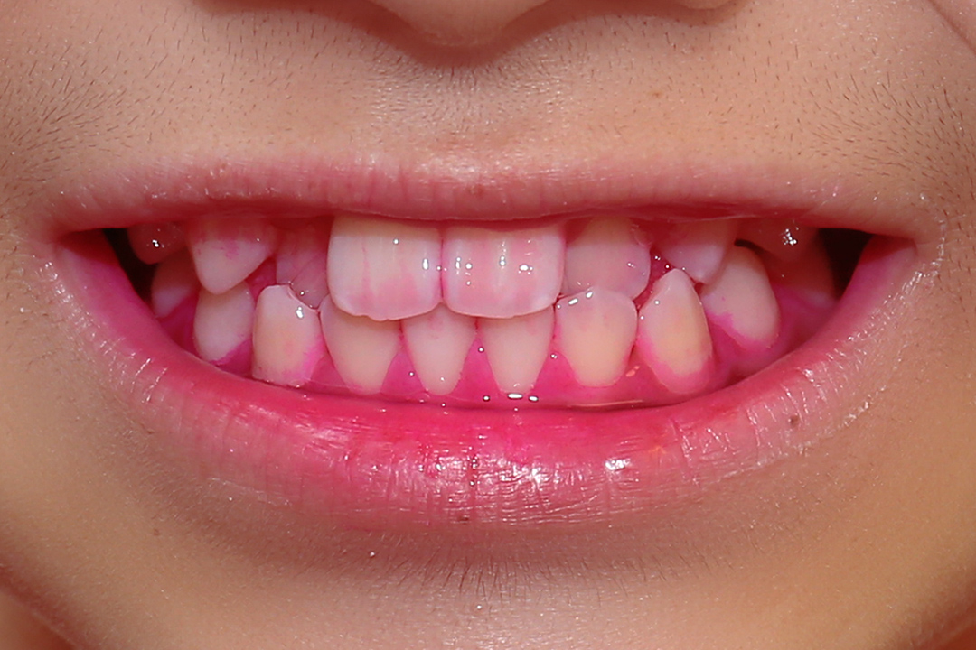 「PCR(プラークコントロールレコード)」とは、歯磨きで落としきれていない汚れを調べる検査です。当院では、歯垢だけに反応する特別な染色液を使用し、お口の中に残っている歯垢を確認します。この方法によって、日々のブラッシングでどれほど歯垢が除去できているかを把握できます。また、必要に応じて正しいブラッシング方法についての指導も行っています。